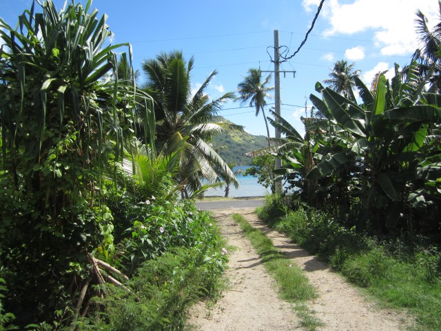 We stopped and visited a local family, ate some fruit and sang some songs together while taking a break. We gave the kids some small bags of Chex Mix as a snack and they gave us some breadfruit and coconut milk. Have you ever tried breadfruit dipped in coconut milk? Amazing treat…very addictive!