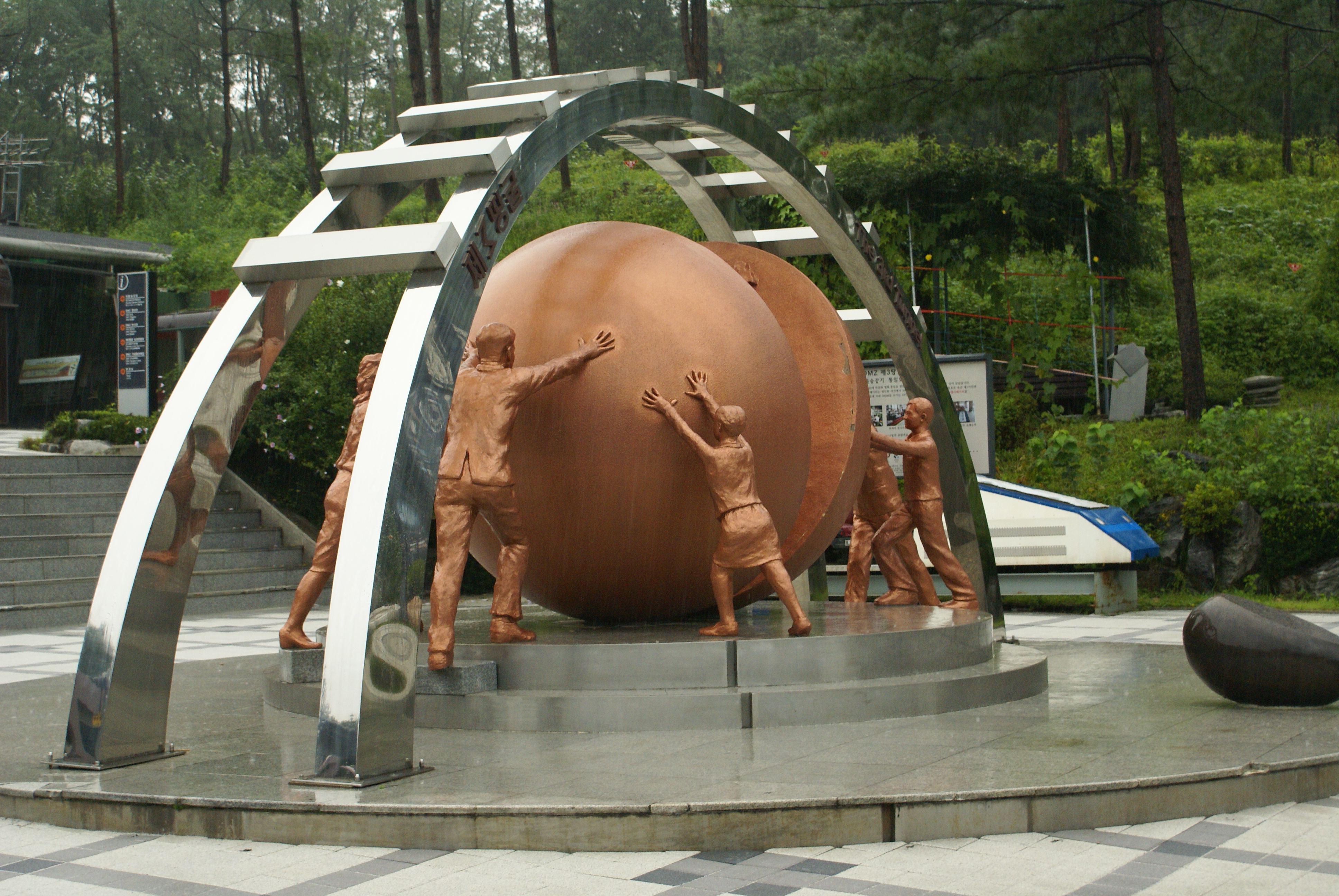We first checked out the “third tunnel” which was found in 1978 as a potential invasion tunnel built by the north. Unfortunately, we could not take pictures, (http://en.wikipedia.org/wiki/Third_Tunnel_of_Aggression) but we hiked down 75 meters to crouch the 250 meters to reach the very edge of the border between North and South Korea. What an amazing experience and quite a workout!