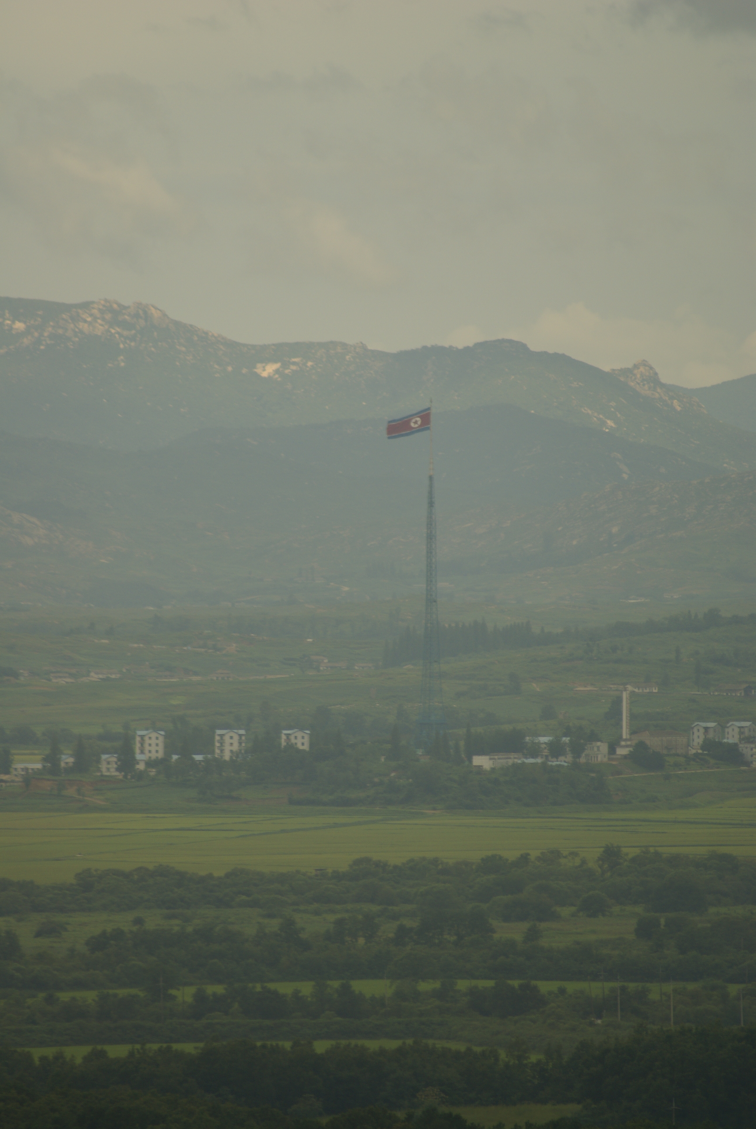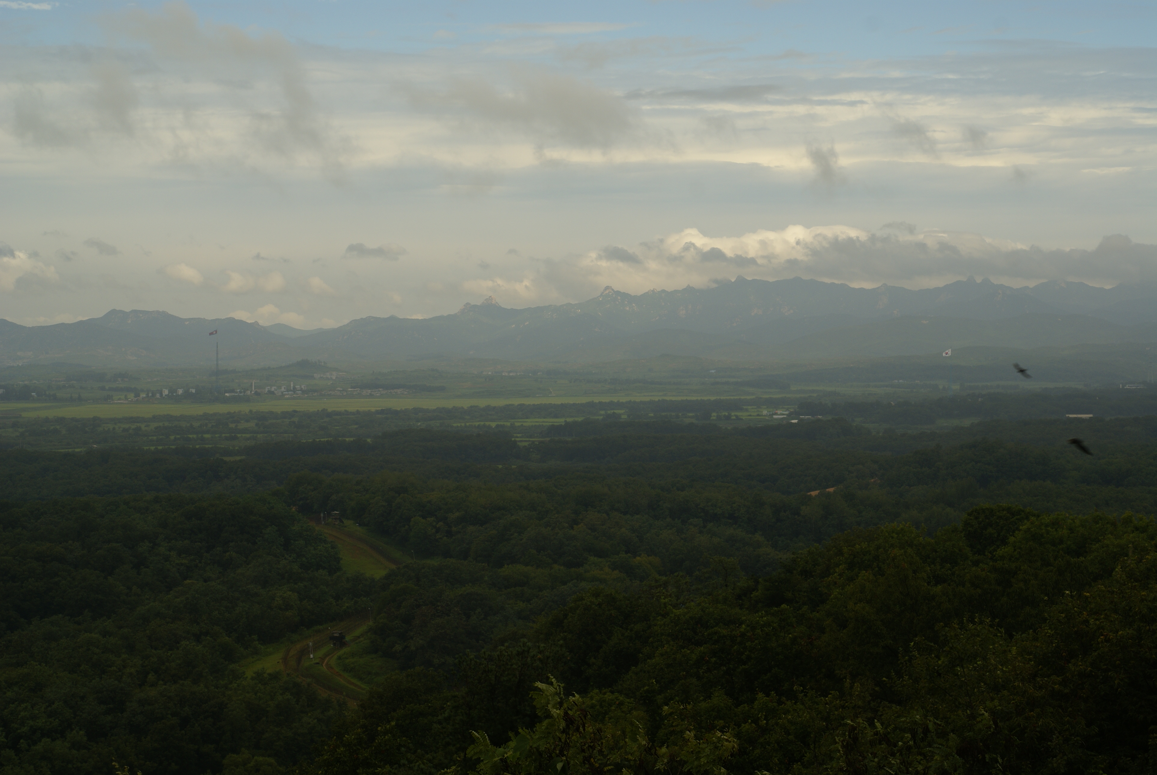 And if you look carefully, and ignore all the sparrows, you can see both flags on the left and ride. These are close to the location where the sides infrequently meet with diplomatic purposes (known as JSA).