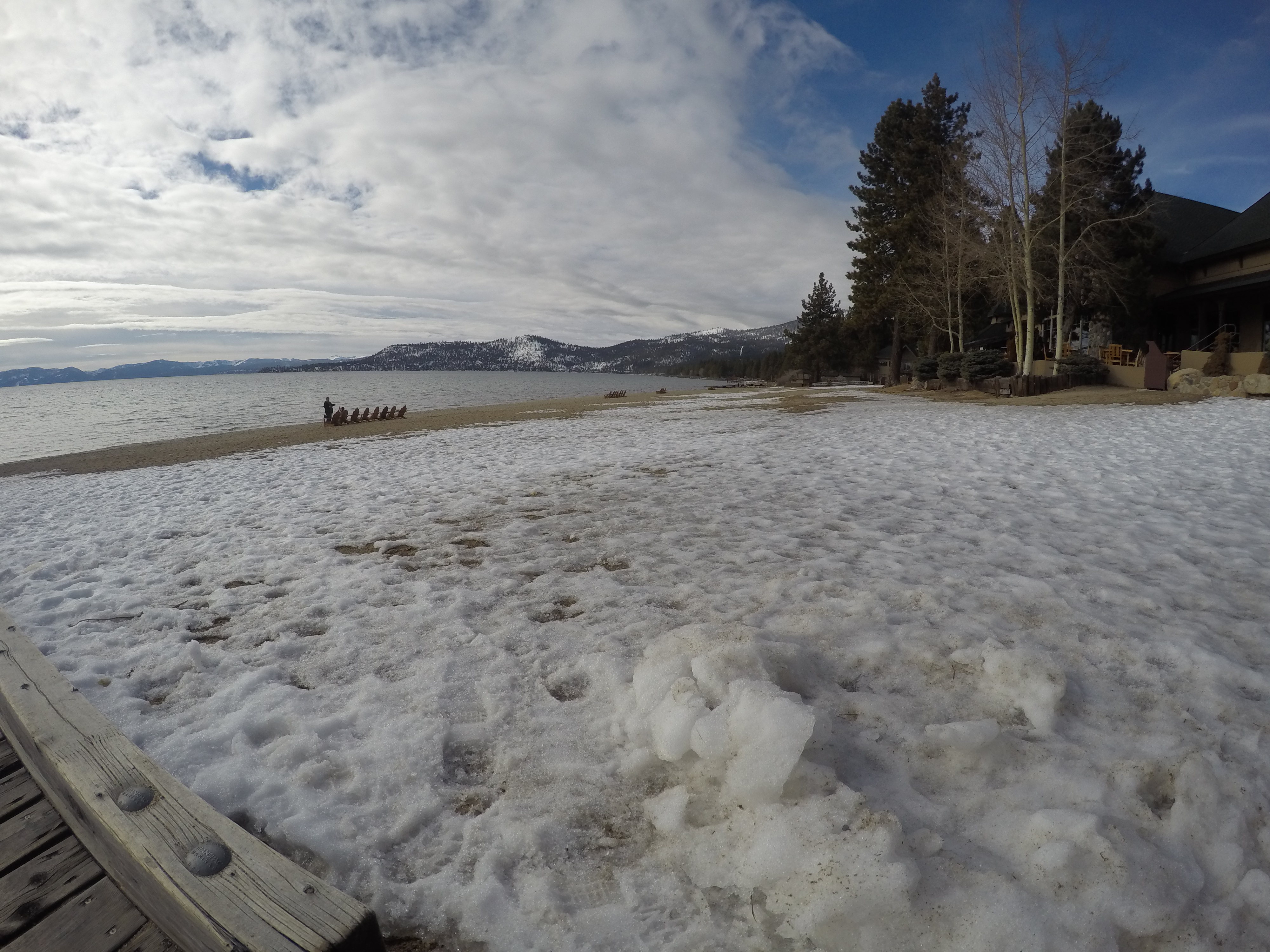 Hanging out on the beach when it is full of snow. Water skiing anyone?