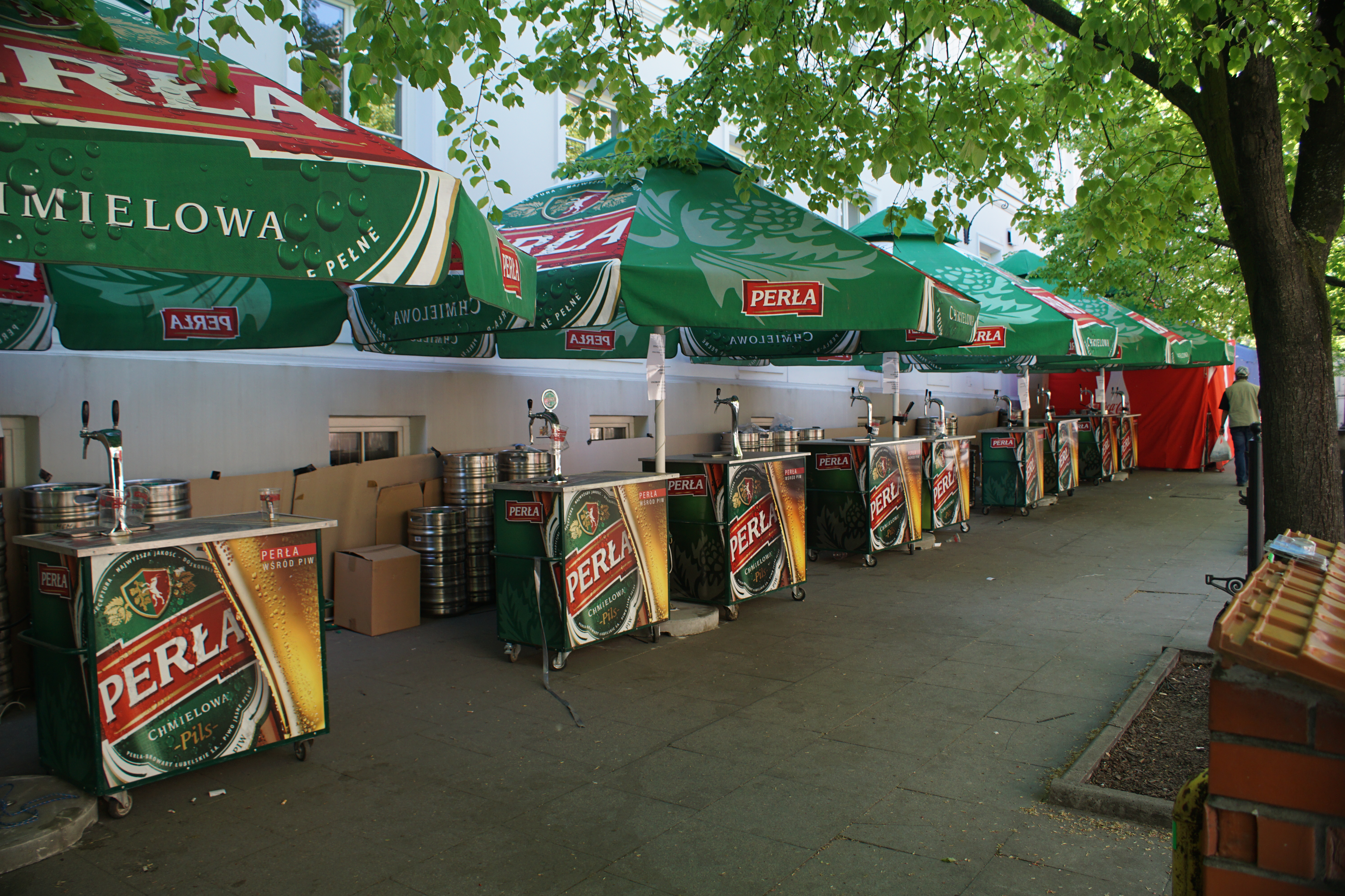 They seem to be setting up for all the protesters forming out in the streets based on how many beer stands they were setting up.