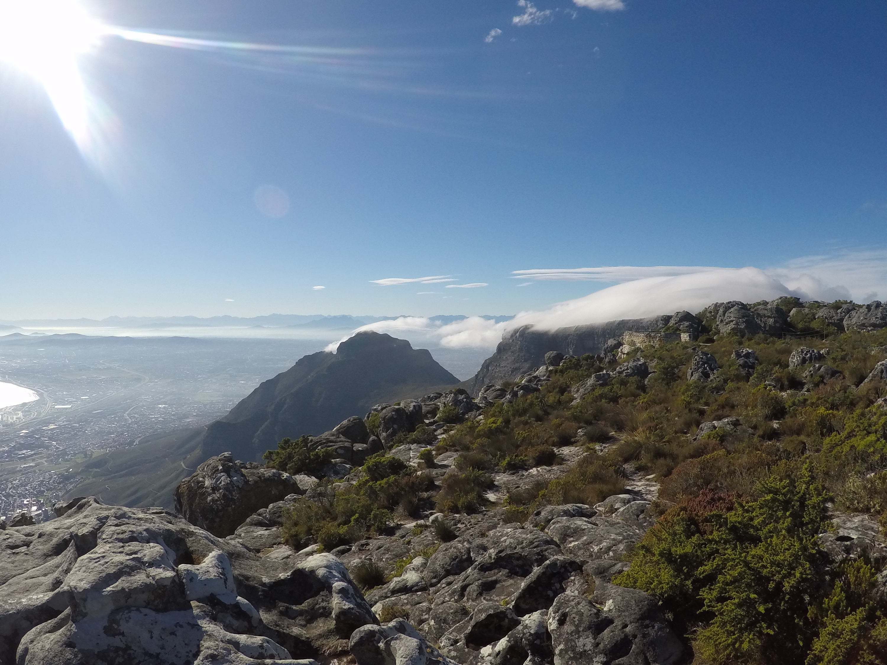 This morning we to the top of Tabletop Mountain which is one the modern wonders of the world. Because we did not want to spend the full day hiking up 1500 meters, we took up the Swiss made cable car which was quite a delight.