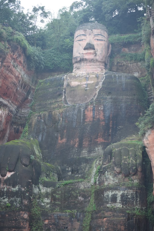 Today, we ventured west to Leshan China to explore a rare site. We took a train, but you can also take buses or private cars. It is about an hour and a half away from Chengdu. One important thing to remember is that you need your passport or citizen ID card to get into train stations. Your ticket must match the ID or passport number or they will not even allow you to get into the station. Only one door is open for the entire station for security checks and the queues to get through the one metal detector and x-ray machine can get a little feisty.