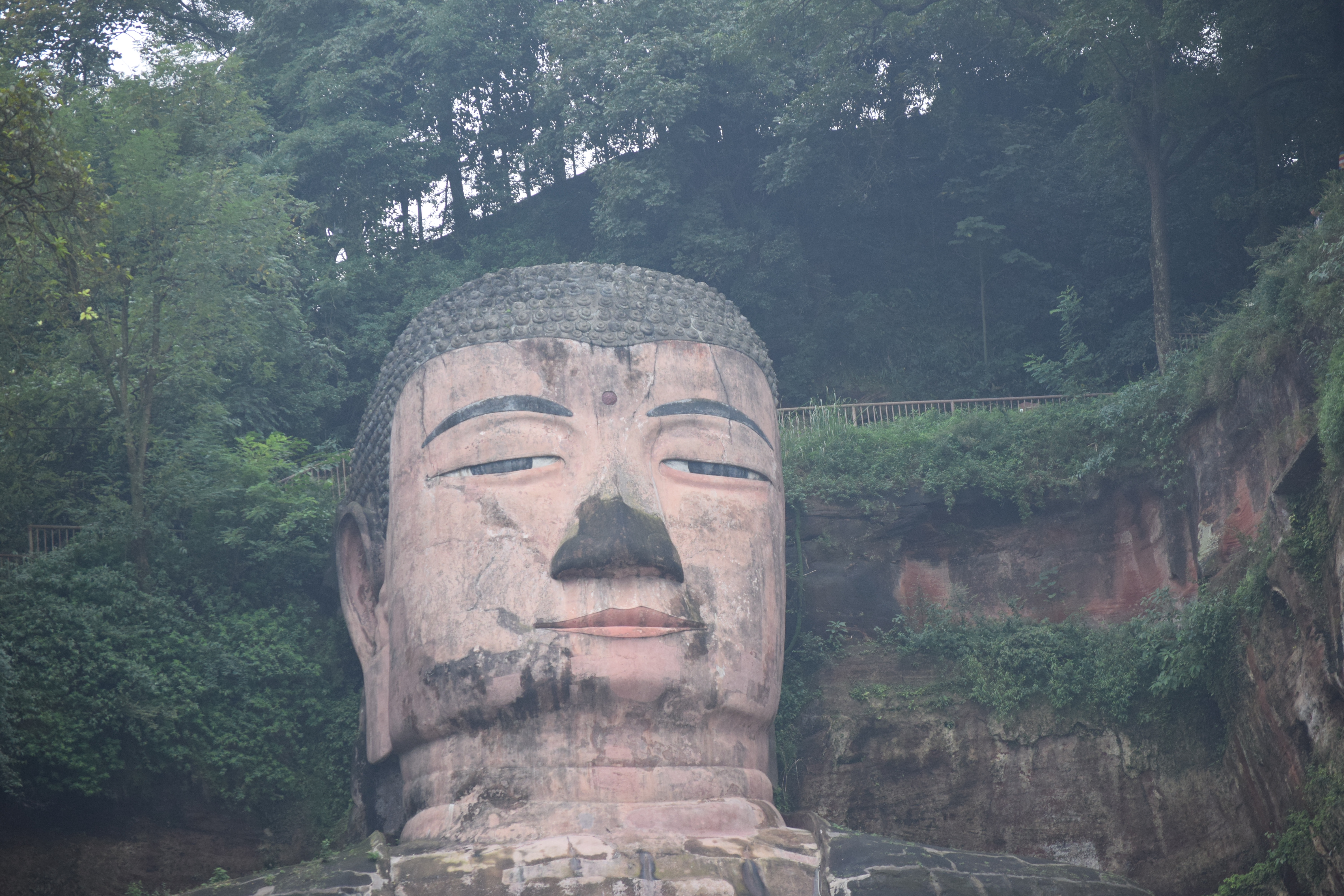 Today, we ventured west to Leshan China to explore a rare site. We took a train, but you can also take buses or private cars. It is about an hour and a half away from Chengdu. One important thing to remember is that you need your passport or citizen ID card to get into train stations. Your ticket must match the ID or passport number or they will not even allow you to get into the station. Only one door is open for the entire station for security checks and the queues to get through the one metal detector and x-ray machine can get a little feisty.