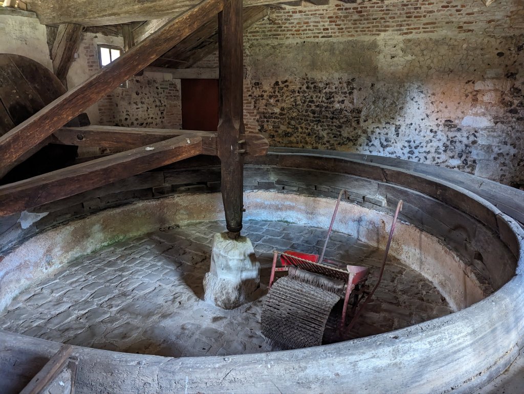 This is where the horse turns the mill to crush the apples.