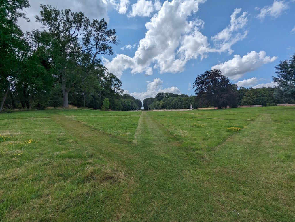 The garden is not manicured like hundreds of years ago, but you can slightly see how it was raised to hide the moat in the distance.