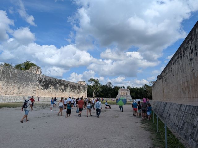 You cannot climb to the top anymore, but the experience is still amazing despite all the people. This is the famous ball court.